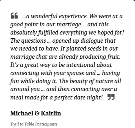 From those small beginnings, Don and Kelly have now been able to encourage thousands of couples through creative intentional date nights, engaging marriage retreats, and practical marriage coaching. They are passionate about supporting couples as they learn to love their marriage.
